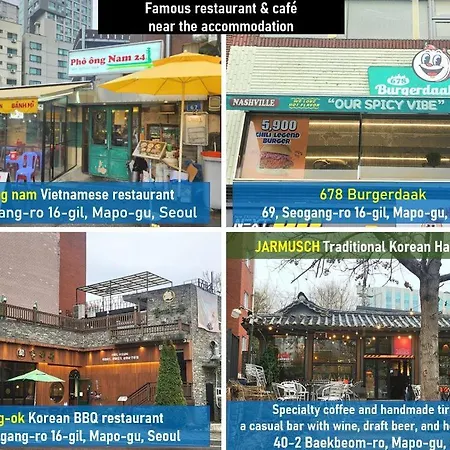 Evermore}#Sinchon Station 5Min #Seogang Station 1Min 首爾位于麻浦区,毗邻新村,距离景福宫有10分钟车程. 大厨房配备微波炉,电热水壶 和冰箱.客人可以使用梳妆区,写字台 和电视.